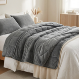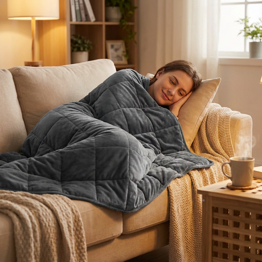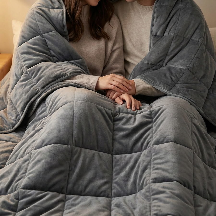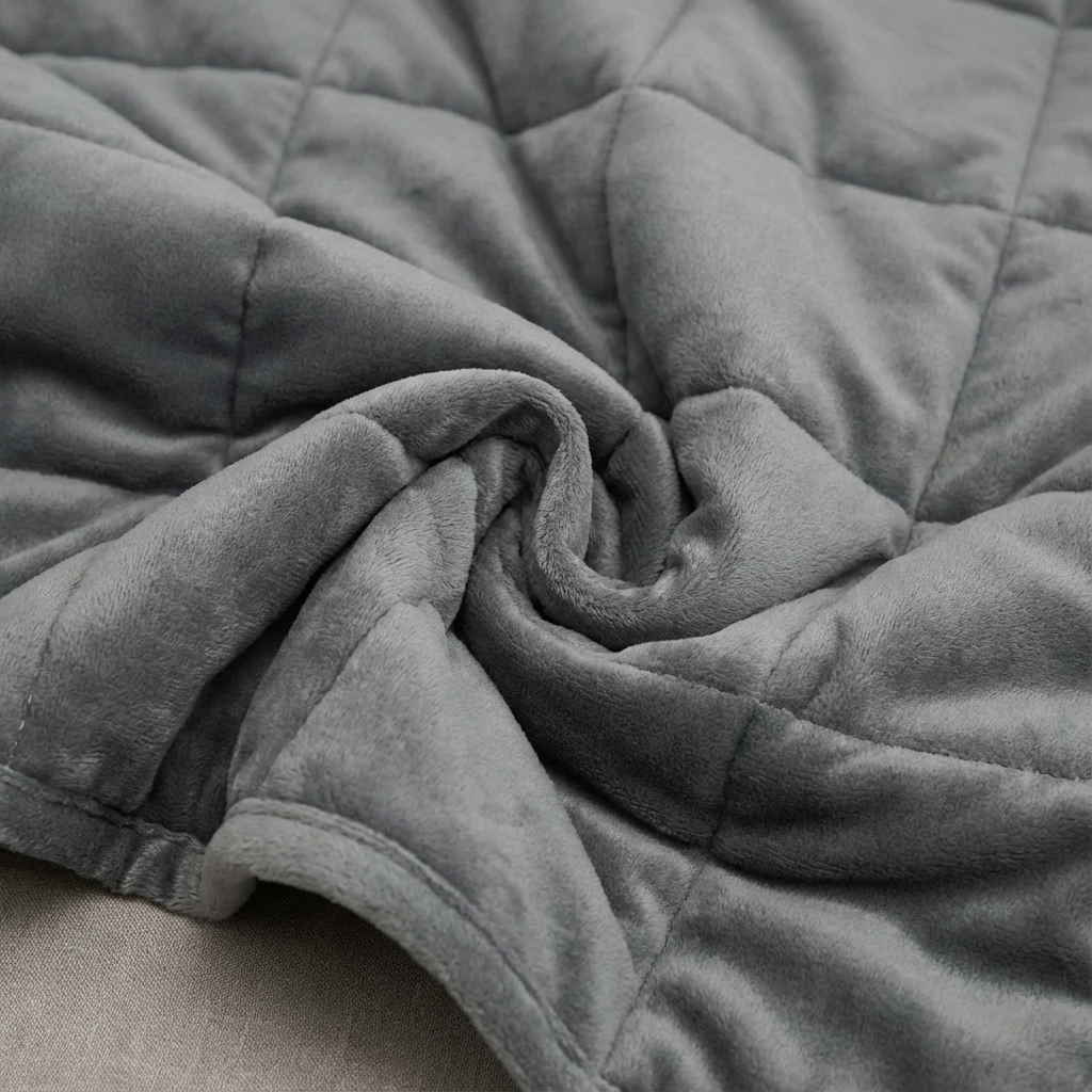 La pression profonde de la couverture lestée épouse le corps avec douceur, sans jamais oppresser. Le poids est réparti uniformément, créant une sensation stable et continue qui rassure instantanément.